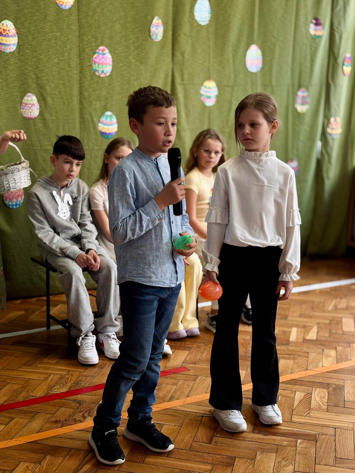 Na zakończenie dzieci przygotowały uroczą niespodziankę i rozdały wielkanocne czekoladowe jajka, wywołując uśmiechy na twarzach wszystkich obecnych.